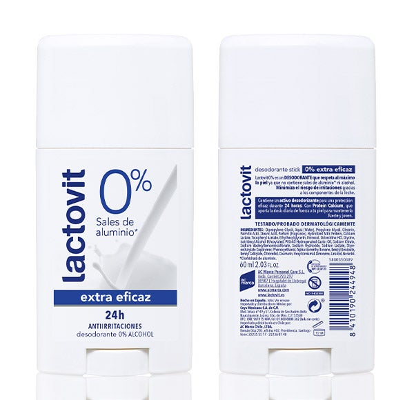 Desodorante LACTOVIT ORIGINAL Stick. Experimenta la acción hidratante de las proteínas de leche mientras gozas de una protección total durante 24 horas. Un desodorante respetuoso con tu piel y sumamente eficaz. Su delicado aroma te envolverá a lo largo de todo el día.
