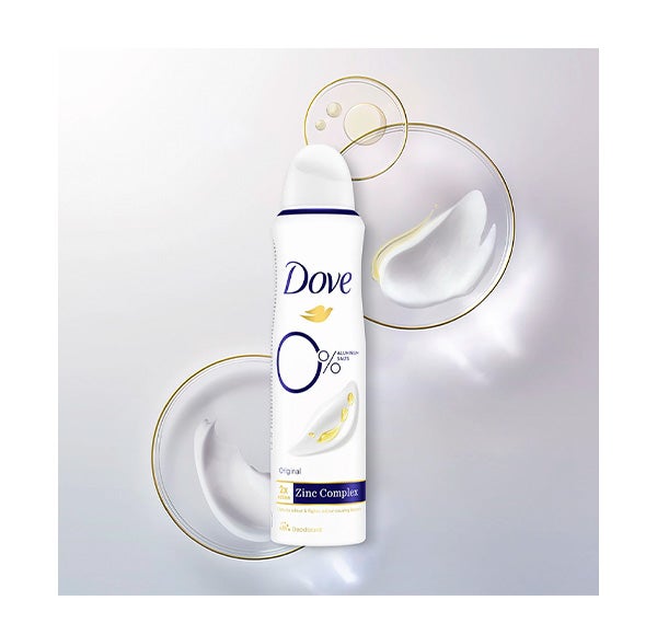 Desodorante Spray Original 0% Aluminio de Dove: Este desodorante en spray protege y mantiene el cuidado de la piel de tus axilas, ayudando a prevenir el mal olor sin contener alcohol ni sales de aluminio.