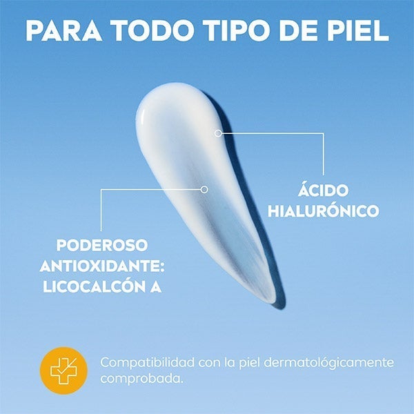 NIVEA SUN Protección facial 2en1 Primer Serum UV Diario SPF 50+ ha sido formulado para ofrecer protección y suavidad al rostro en cuestión de segundos. Brinda una defensa alta e inmediata frente a los efectos dañinos de los rayos UV, tanto a corto como a largo plazo, ayudando a prevenir el envejecimiento prematuro de la piel. Este serum innovador y ultraligero combina dos formas de Ácido Hialurónico con Licocalcón A, un potente antioxidante que ayuda a proteger las células frente al estrés oxidativo. El Ácido Hialurónico de cadena larga aporta hidratación en las capas más externas de la piel, mientras que el de cadena corta penetra con mayor profundidad para favorecer la síntesis natural de Ácido Hialurónico (in vitro). Su textura es ligera, no grasa ni pegajosa, y no deja marcas blancas visibles. Se absorbe de inmediato, lo que lo hace perfecto para el uso diario y como prebase de maquillaje. Ideal para layering, con un acabado invisible en todos los tonos de piel.