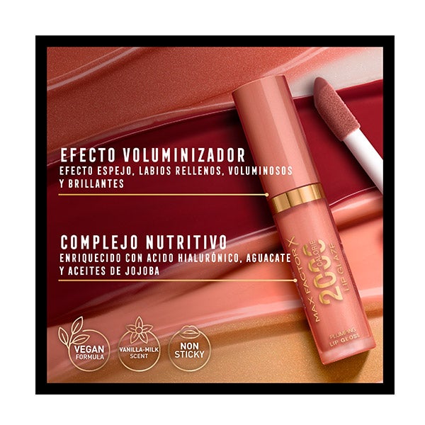 Vive la experiencia de un brillo radiante con 2000 Calorie Lip Glaze de Max Factor. Con una sola aplicación de este gloss hidratante, tus labios se llenarán de luminosidad, con un efecto de volumen inmediato y una sensación de suavidad duradera.