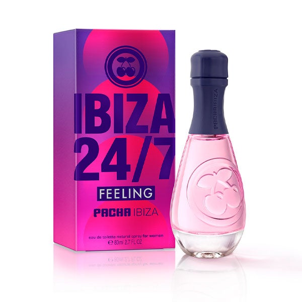 El estuche de esta fragancia evoca los tonos cambiantes de los atardeceres isleños. En el perfume femenino, la fusión de colores captura el momento exacto en el que el ocaso se vuelve más magenta, profundo y envolvente. Presenta un acabado plateado metalizado con delicados brillos y destellos.