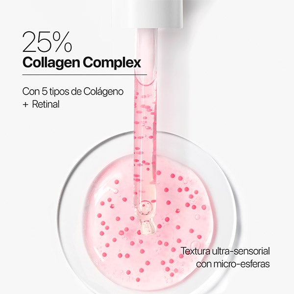 Sérum de última generación con un 25% de complejo de Colágeno y Retinal, diseñado para potenciar al máximo los resultados visibles en la piel.