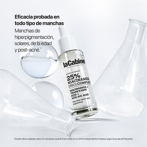 Sérum de nueva generación con un complejo al 25% de Niacinamida Pro, Ácido Tranexámico y Ácido Azelaico que potencia intensamente los resultados para una piel más uniforme.
