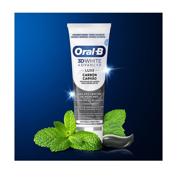 La pasta dentífrica Oral-B 3D White Luxe Carbón cuenta con una composición revitalizante que ayuda a prevenir de forma activa la aparición de manchas superficiales durante hasta 24 horas, cuando se utiliza dos veces al día.