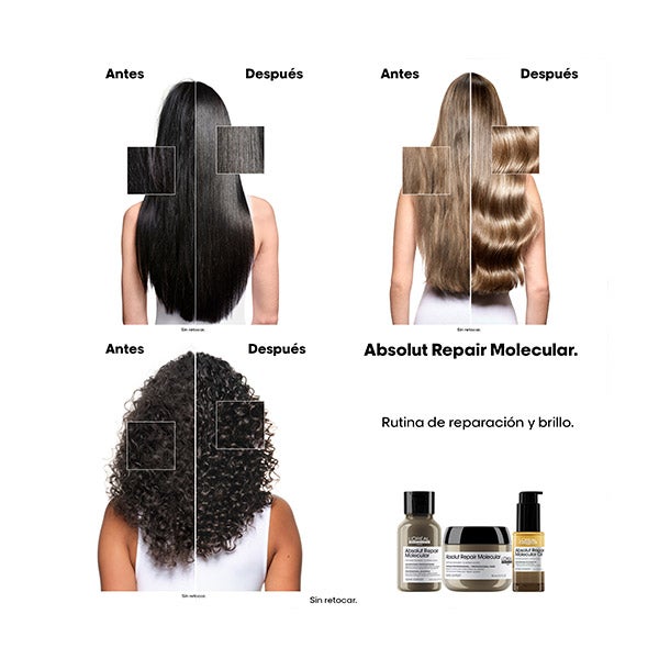 Aceite bifásico innovador, de textura ligera y absorción inmediata, diseñado para restaurar 2 años de daños y ofrecer hasta 100 horas de brillo. Su fragancia duradera ha sido creada por expertos perfumistas.