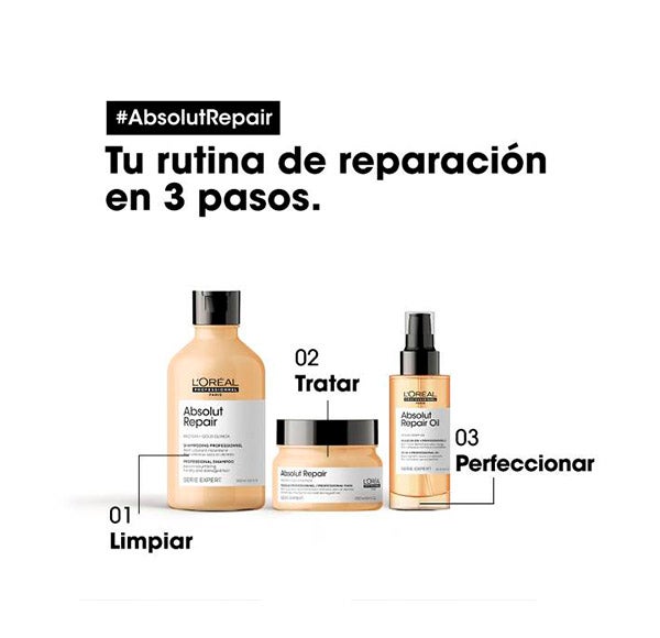 El Champú Absolut Repair Gold restaura y refuerza las zonas más castigadas del cabello gracias a la proteína de quínoa dorada. Diseñado para cabellos frágiles o muy deteriorados, logra un efecto inmediato de reconstrucción y transformación profunda. Limpia con suavidad mientras fortalece, repara y protege la melena. La estructura interna se refuerza, la fibra capilar recupera su integridad y la superficie queda resguardada frente a futuras agresiones.