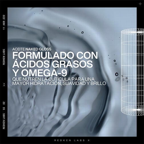 Realza la luminosidad de tu melena con Naked Gloss, el aceite ultra-ligero de Redken que proporciona un brillo de espejo. Su fórmula con ácidos grasos y Omega-9 contribuye a sellar la cutícula, conservar la hidratación, suavizar el tacto y mantener la intensidad del color. Ofrece hasta un 130 % más de brillo* desde la primera aplicación, controla el encrespamiento durante 72 horas y protege del calor hasta 230 °C. Su fragancia combina notas de frutos rojos, jazmín y vainilla. Adecuado para todo tipo de cabello, natural o teñido, aportando ligereza sin residuos ni peso. *Cabello lavado
