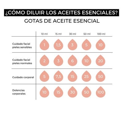 Al ser un aceite esencial 100% puro, se recomienda su uso diluido en un aceite base o en combinación con otros productos de cuidado personal para evitar irritaciones en la piel.