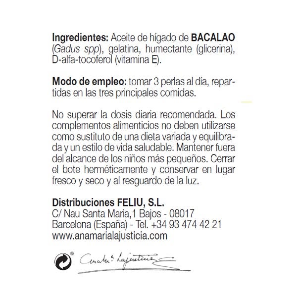 COMPLEMENTO ALIMENTICIO A BASE DE ACEITE DE HÍGADO DE BACALAO Y VITAMINA E.
