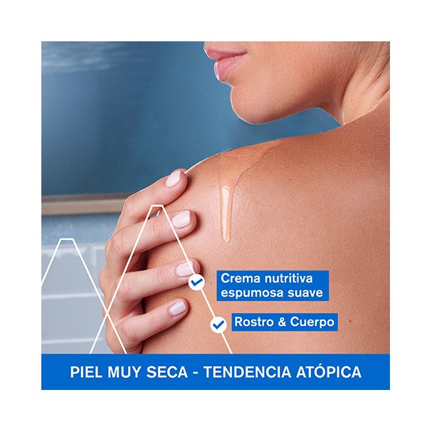 Su espuma ligera y muy suave proporciona bienestar inmediato y prolongado en pieles secas y muy secas.