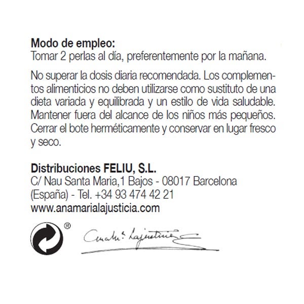 Consumir 2 perlas diarias, preferiblemente al comenzar el día.