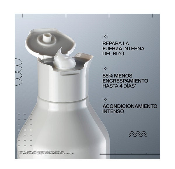Acondicionador Acidic Bonding Curls, una fórmula sin siliconas que nutre, fortalece y repara tus rizos desde el interior. Gracias a su tecnología Curl-Bond, que combina ácido cítrico, urea y glicina, este acondicionador revitaliza la estructura del cabello rizado aportando resistencia, luminosidad y cuerpo. Ayuda a reconstruir los enlaces y recuperar la fuerza natural de cada rizo.
