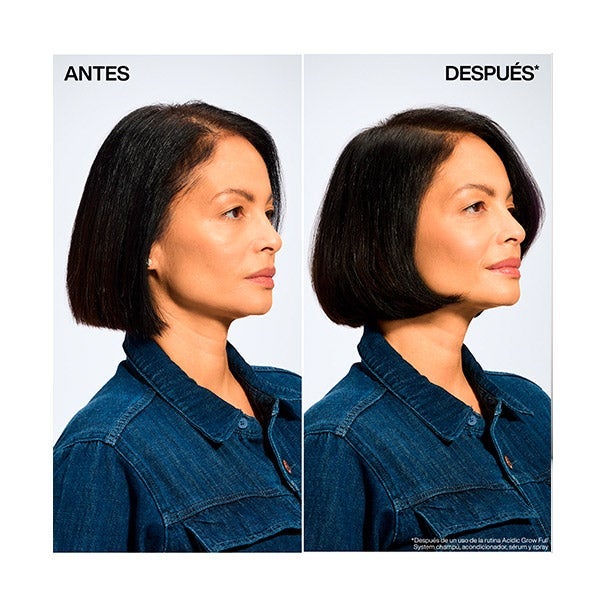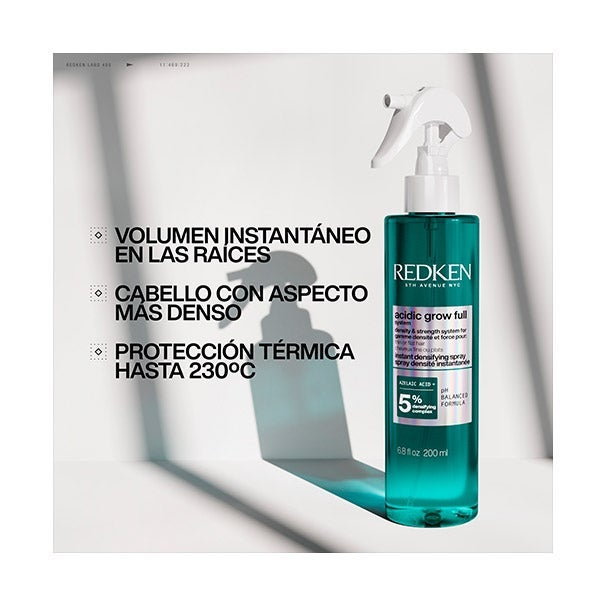 Aporta volumen de forma inmediata desde la raíz, dejando la melena con mayor cuerpo y densidad visual. Ofrece protección frente al calor hasta 230 °C y cuenta con una fórmula de pH balanceado.