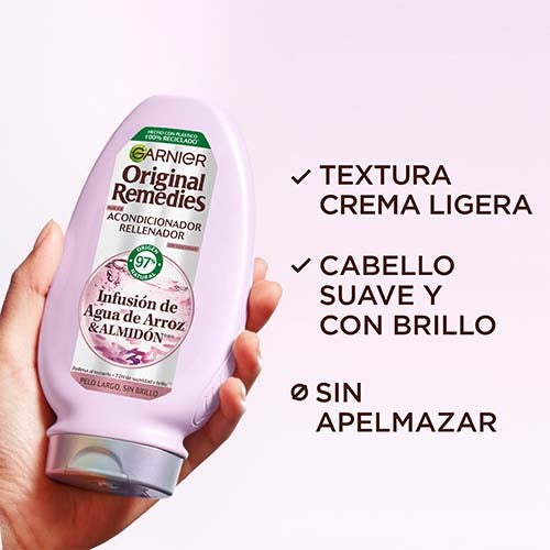 Garnier Original Remedies Acondicionador Rellenador con Infusión de Agua de Arroz ha sido creado para cuidar el cabello largo que ha perdido su luminosidad.