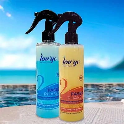 ACONDICIONADOR BIFáSICO SIN ACLARADO LOV’YC enriquecido con Pro-Vitamina B5 y aceite de nuez del Brasil que forma una película alrededor del cabello, manteniendo la cutícula firme y haciendo que el cabello esté brillante, suave y fácil de peinar. 300 ML.