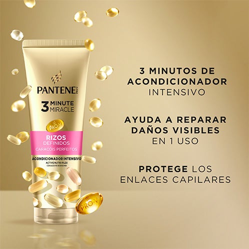 Experimenta el poder del acondicionador Pantene 3 Minute Miracle Rizos Definidos, enriquecido con la Fórmula Pro-V y la avanzada tecnología ACTIVE NUTRI-PLEX. Este tratamiento intensivo ha sido diseñado para tratar el cabello encrespado y difícil de dominar, convirtiéndose en un paso esencial dentro de tu rutina de cuidado del cabello. Su combinación exclusiva de nutrientes, con Provitamina B5, lípidos fortalecedores y antioxidantes protectores, aporta una atención completa para mantener la vitalidad capilar.