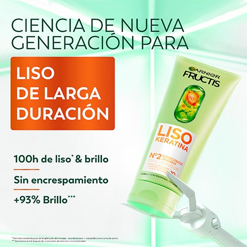 Su fórmula con [COMPLEJO ALISADOR KERATINA VEGETAL + ACEITE DE ARGÁN] deja el pelo visiblemente más liso de manera inmediata.