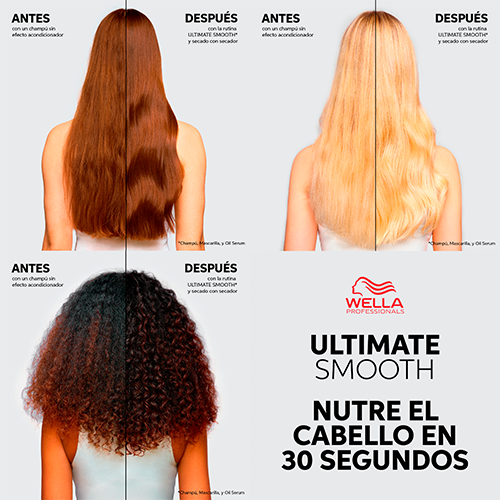 El acondicionador Ultimate Smooth de Wella Professionals pertenece a la línea profesional de cuidado del cabello, creada para ofrecer suavidad y nutrición al cabello seco, opaco y con frizz. Este acondicionador aporta una textura más lisa, nutre y realza el brillo natural del cabello.