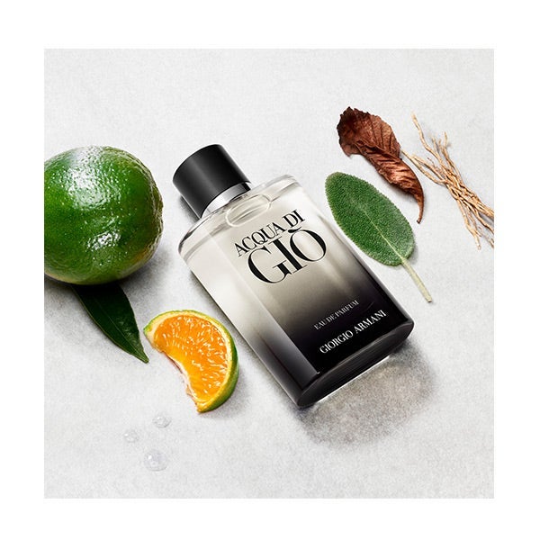 ACQUA DI GIÒ EAU DE PARFUM se abre con una nota chispeante de mandarina verde natural procedente de Calabria, Italia, que evoca las raíces mediterráneas de Giorgio Armani.