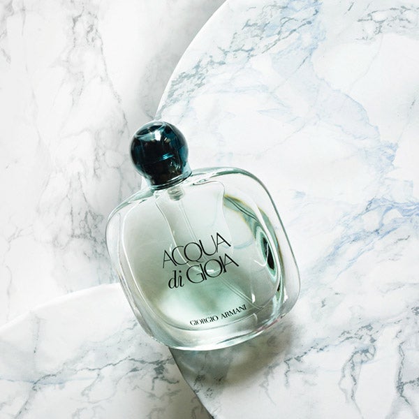 El perfume femenino Acqua di Gioia de Giorgio Armani celebra el poder del agua como fuente de energía y serenidad. Alegre y pura, transmite la esencia de la felicidad creada por Giorgio Armani, quien transforma la emoción natural en un aroma inspirador.