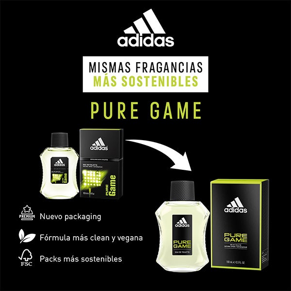 Adidas Pure Game es una fragancia de carácter amaderado y aromático, que inicia con una fusión cautivadora de pomelo luminoso y mandarina, envuelta por el frescor burbujeante de la albahaca verde y el toque vibrante de la pimienta.