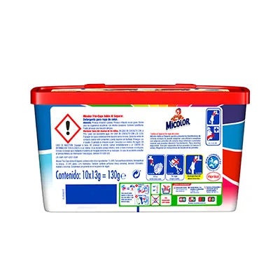 Micolor Trio Caps Adiós Al Separar: gracias a sus tres poderes en una sola cápsula y a su fórmula anti-transferencia de colores puedes lavar toda tu ropa de color en una sola colada. Descubre la forma más cómoda, práctica y sostenible de lavar tu ropa con las nuevas cápsulas predosificadas. Consigue limpieza, luminosidad y frescor en 1 cómodo gesto y ¡sin separar!