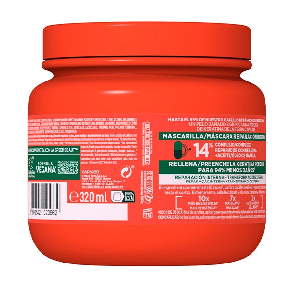 Renueva tu rutina de cuidado capilar con la Mascarilla Adiós Daños de Garnier Fructis, formulada con Aceite de Marula para devolver la vitalidad al cabello debilitado. Esta fórmula vegana contiene un 13% de complejo reparador con keratina, ofreciendo un tratamiento intensivo que deja el cabello visiblemente más saludable.