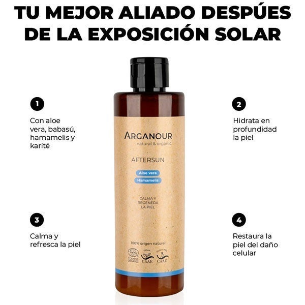 Este after sun de origen natural combina aloe vera, camomila y aceite esencial de menta.