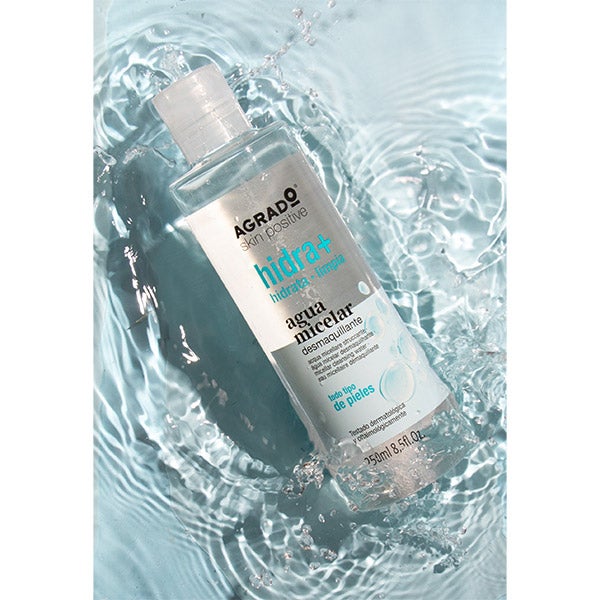 Con su triple acción, el Agua Micelar desmaquillante Agrado facilita la rutina de limpieza facial diaria.