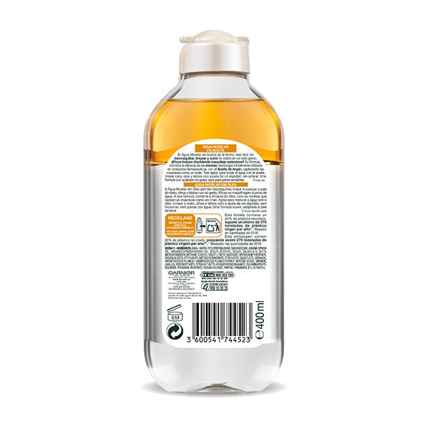 Una innovación procedente del ámbito farmacéutico que une el poder limpiador de las micelas con las propiedades del Aceite de Argán, atrapando sin esfuerzo las impurezas y el maquillaje más resistente, incluso el waterproof, sin necesidad de frotar.