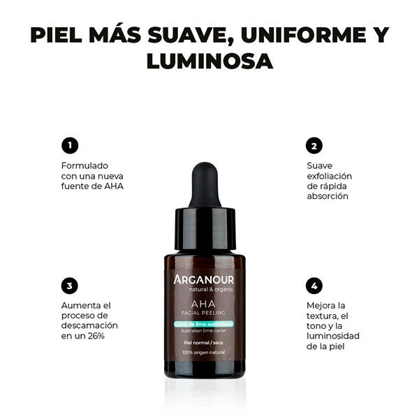 Este peeling se elabora con una innovadora fuente de AHA obtenida del caviar de lima australiano. Favorece una piel más luminosa, firme y suave mediante una exfoliación de acción rápida que ofrece resultados visibles en apenas 30 minutos.