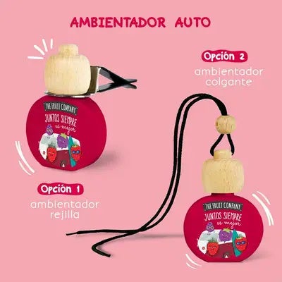 Ambientador de coche con aroma a Frutos Rojos y extractos naturales con 2 usos: