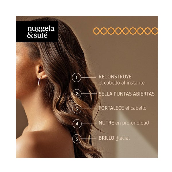 Las Ampollas Keratina-Hialurónico de Nuggela & Sulé presentan una combinación exclusiva de Keratina y Ácido Hialurónico que restaura el cabello dañado por el uso diario mientras favorece su reconstrucción interna.