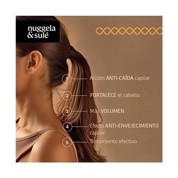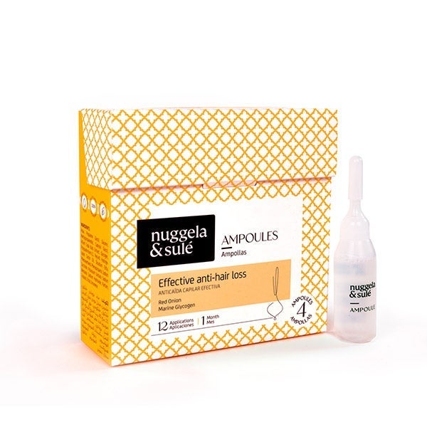 El tratamiento anticaída de Nuggela & Sulé ofrece una innovadora fórmula que combina Glucógeno Marino y Extracto de Cebolla Roja para reducir la caída capilar y reforzar la fibra del cabello.