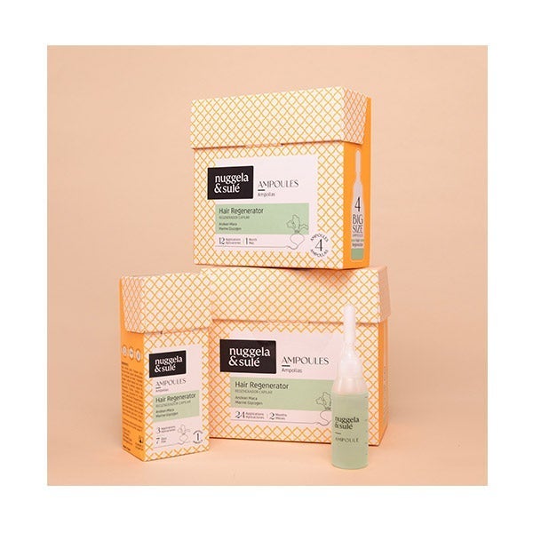Ampollas Regenerador Capilar Nuggela proporcionan una cuidada mezcla de activos, vitaminas y micronutrientes diseñados para revitalizar y fortalecer el cabello.