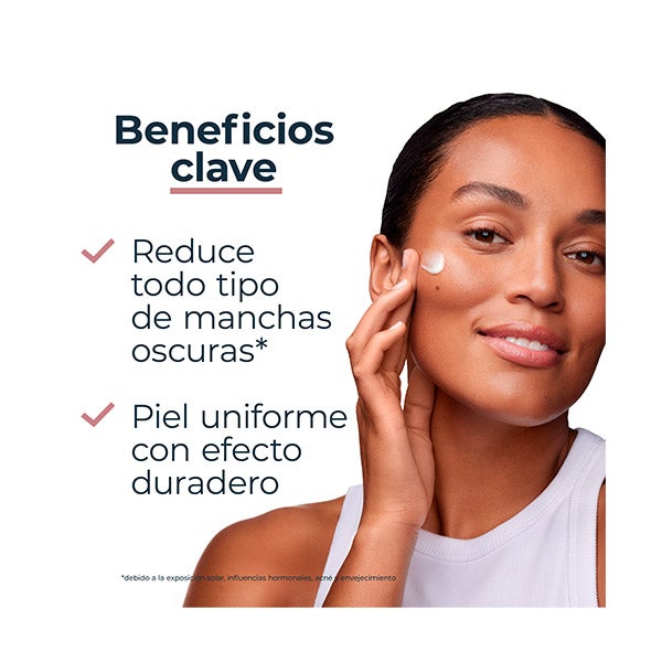 Este tratamiento facial anti manchas, adecuado para cualquier tipo de piel, cuenta con una textura ligera, una fragancia suave y una rápida absorción. Asimismo, contribuye a reducir la hiperpigmentación mientras hidrata la piel profundamente.