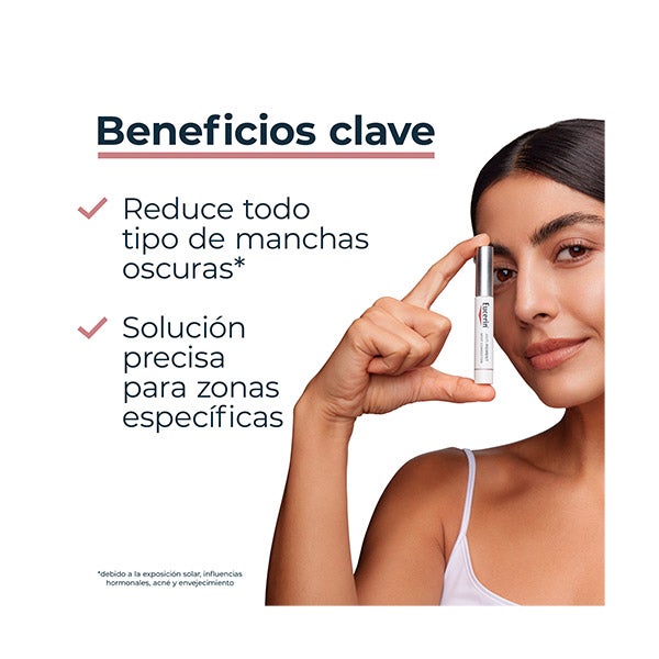 La exposición solar, las variaciones hormonales y el paso del tiempo pueden generar manchas en la piel. Para contrarrestarlas, Eucerin creó Anti-Pigment Corrector de manchas, un tratamiento antimanchas en práctico formato lápiz, pensado para el cuidado facial y con los siguientes beneficios: