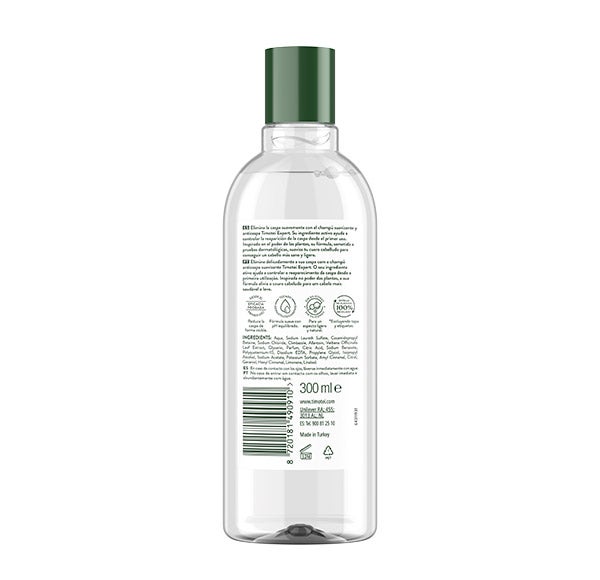 Timotei champú anticaspa suavizante combina Allantoin, que ayuda a aliviar la sensación de irritación del cuero cabelludo, con Climbazole, un activo que contribuye a evitar la aparición de caspa.