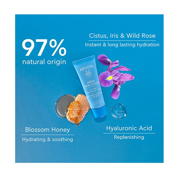 Esta crema en textura gel ligera, desarrollada por especialistas con extractos florales de cistus, iris, rosa salvaje y miel, todos reconocidos por su intenso poder hidratante, restaura al instante las reservas de humedad de la piel.