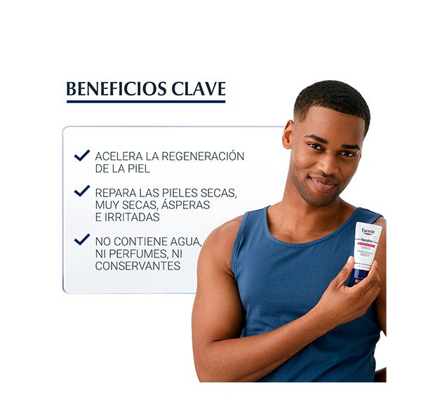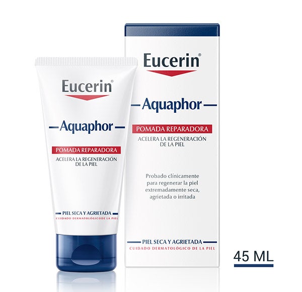 La pomada regeneradora Aquaphor de Eucerin, desarrollada especialmente para el cuidado del cuerpo, resulta ideal para favorecer el proceso de restauración cutánea en pieles extremadamente secas, irritadas o dañadas. Estos son los efectos principales de esta crema corporal de acción reparadora: