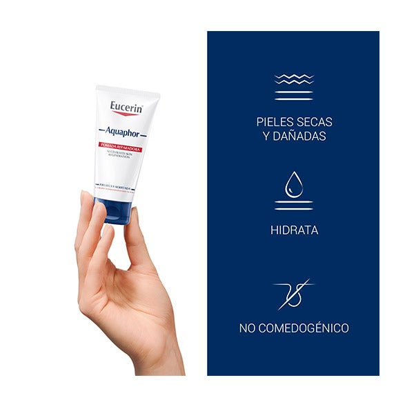 La crema reparadora Aquaphor está recomendada para el cuidado de la piel sensible infantil, el tratamiento de pequeñas heridas o quemaduras, el alivio de manos y cutículas secas, pies y talones agrietados o con rozaduras, así como para el cuidado posterior a procedimientos dermatológicos.