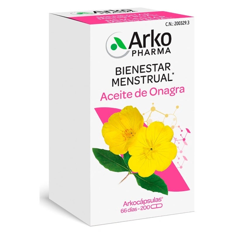 Arkocápsulas Aceite de Onagra 200 Cápsulas es un suplemento alimenticio diseñado para brindar un apoyo efectivo al bienestar femenino, especialmente durante el período premenstrual. Este producto destaca por su fórmula innovadora, compuesta por ingredientes 100 % vegetales que garantizan una opción natural y saludable.