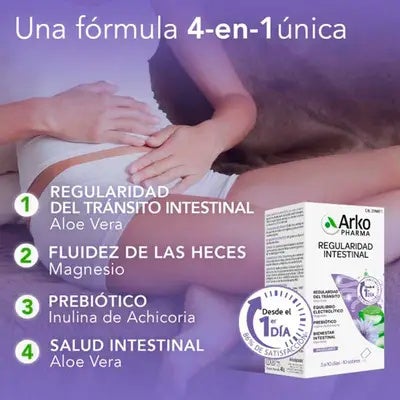 Arkocápsulas Tránsito Intestinal ofrece una solución natural para favorecer el confort digestivo, gracias a su fórmula exclusiva a base de ingredientes 100% vegetales y minerales. Su acción integral se basa en cuatro pilares fundamentales que promueven un tránsito intestinal saludable: