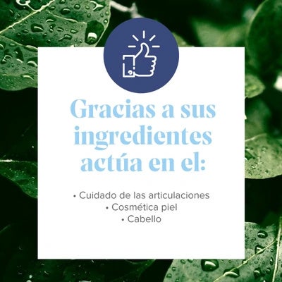 - ácido hialurónico (25mg por dosis): Apoya la lubricación y movilidad de las articulaciones.