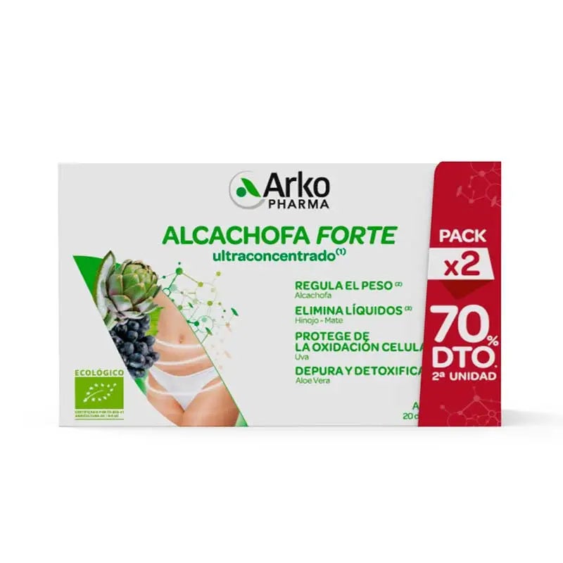 Arkofluido alcachofa forte pack 70% 2x20 ampollas diseñado para cubrir las necesidades del día a día.