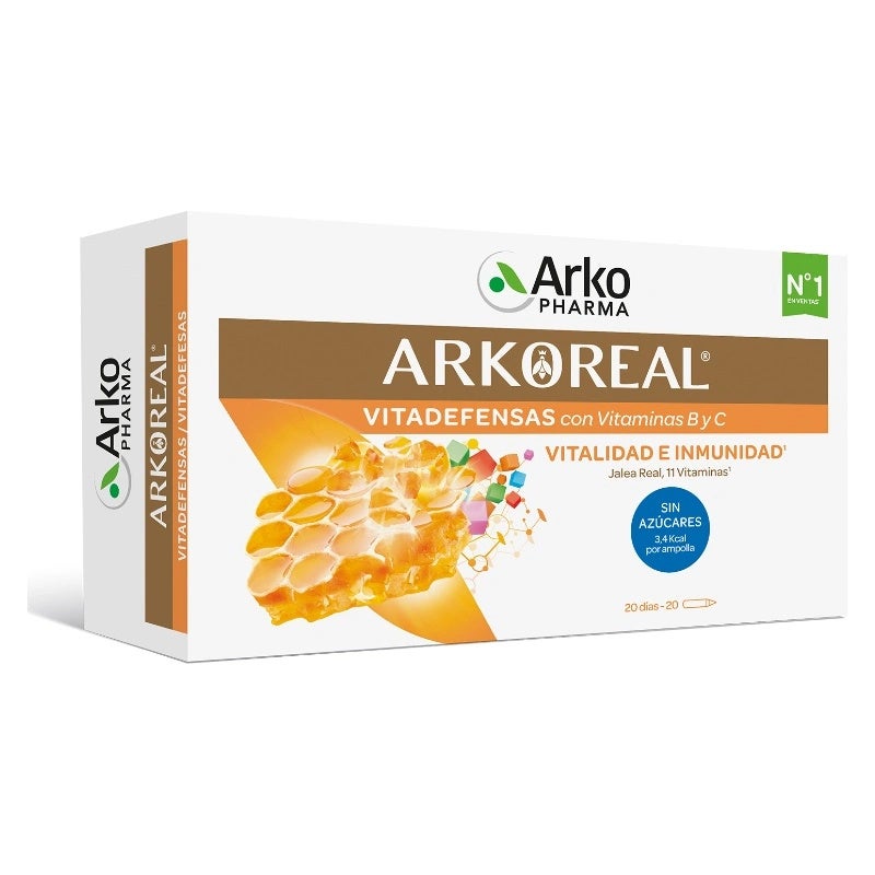 Arkoreal jalea real vitadefensas 20 ampollas diseñado para cubrir las necesidades del día a día.