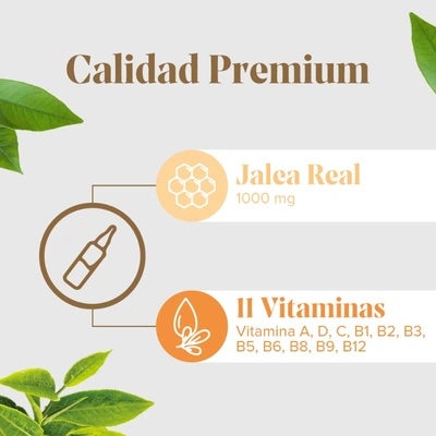 - Refuerza el sistema inmune: Gracias a su alto contenido de jalea real, vitaminas (A, C, D, B5, B6, B12), y minerales, este producto ayuda a fortalecer las defensas del cuerpo.