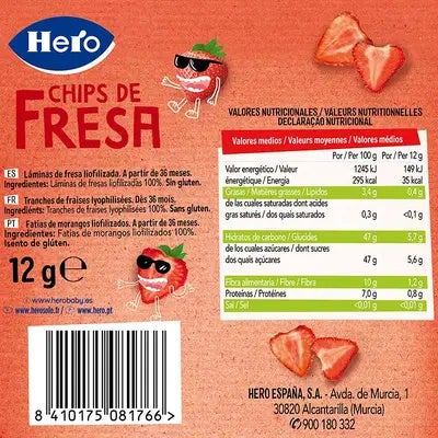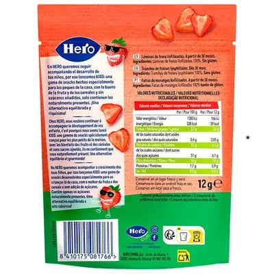 Hero KIDS Chips de Fresa para los peques de la casa, con lo bueno de la fruta y de los cereales y sin azúcares añadidos. 100% fresas