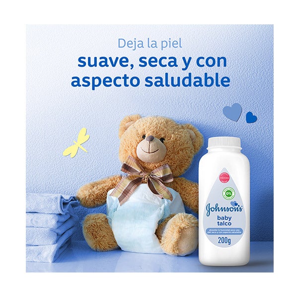 El Talco de Johnson’s Baby ayuda a absorber la humedad sobrante de la piel del bebé, manteniéndola suave y seca a lo largo del día.