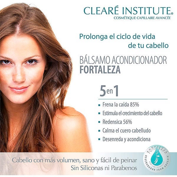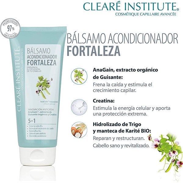 El bálsamo acondicionador fortaleza de Clearé Institute combina activos naturales y ecológicos que suavizan, fortalecen y estimulan el crecimiento capilar, devolviendo vitalidad y luminosidad.